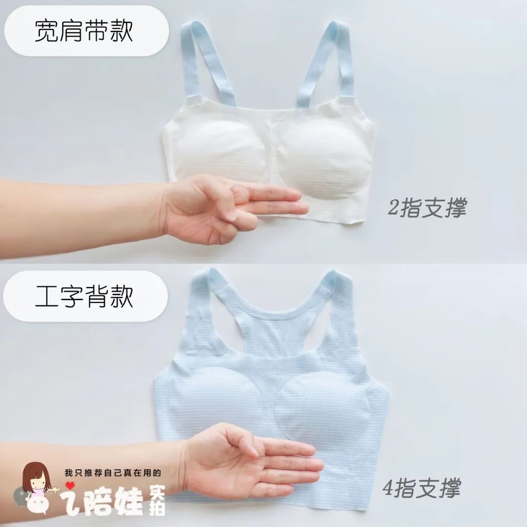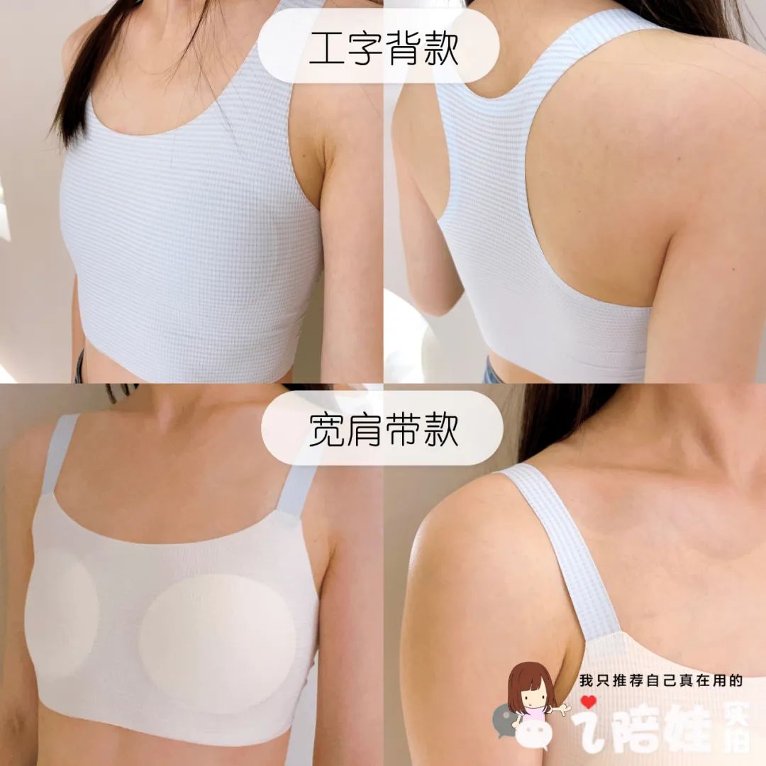 两款除了肩带不同,底边的宽度也不同。工字背款,能提供更好的支撑。