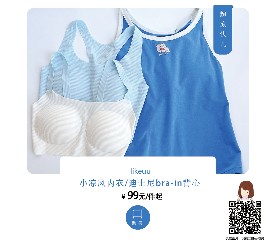 芊芊三年来一直穿likeuu的内衣,今年夏天又新出了【小凉风内衣】和【迪士尼小背心】,和以前一样好穿的同时,还做了更多升级: