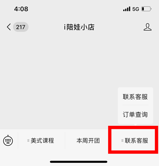 下面芊妈的服务号【芊妈的i陪娃小店】,可以接收到订单查询和一键联系客服等服务。(直接单击?)