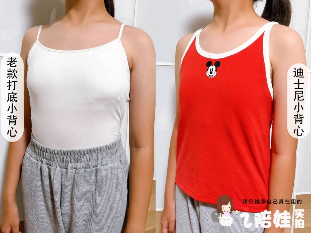 另外我还多选了一个带胸垫的小背心。之前我也给孩子买过带胸垫的小背心,但是肩带细、面料贴身,孩子说还是像内衣,不好意思外穿。