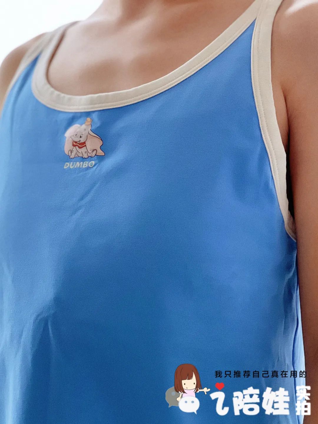 这次选的小背心,看起来就和外穿的衣服一样,但是很好的隐藏了胸垫,孩子终于可以合二为一,更凉快了。