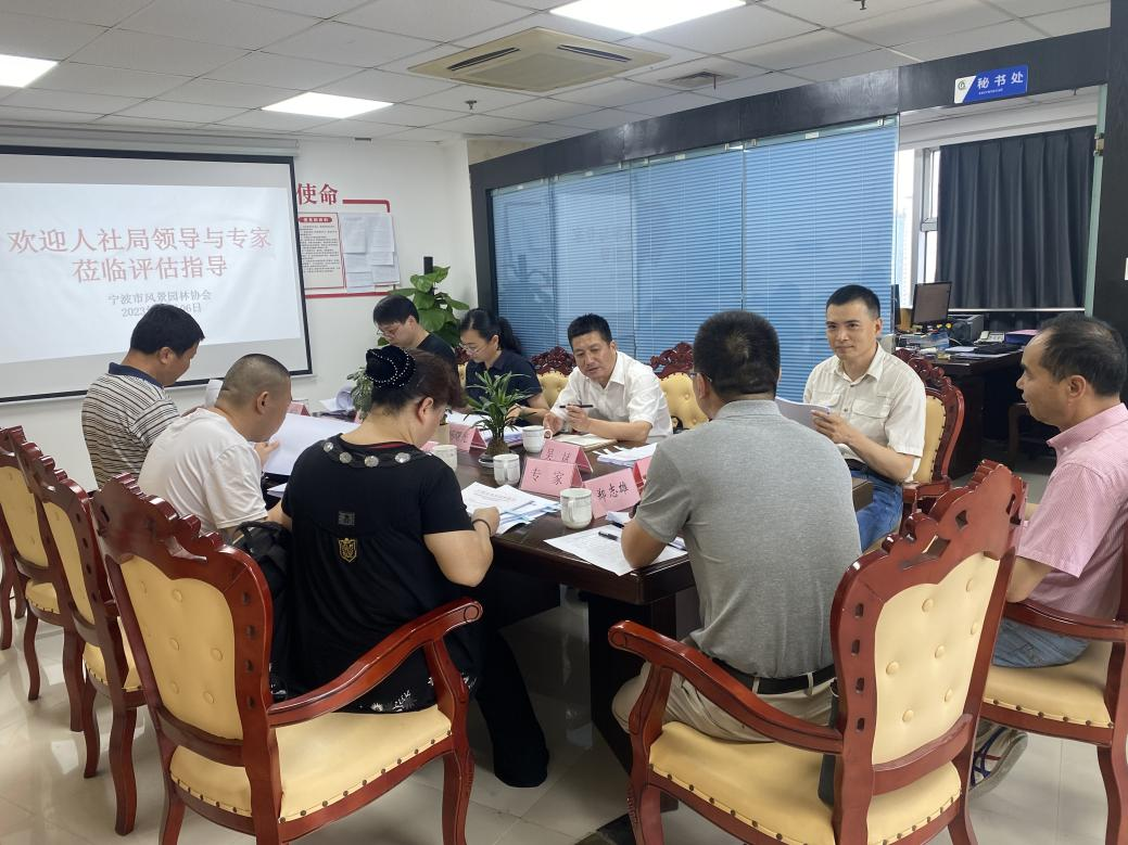 在此次职业技能等级认定试点企业申报工作中,宁波市风景园林协会高度重视,成立了专门的职业技能等级评价中心组织机构,多次召开专题会议对申报工作进行规划部署。根据申报要求积极筹备,认真撰写了园林绿化工职业技能等级评价资料;梳理了所申报职业(工种)的国家职业技能标准或行业规范、考核题库;确定了后期开展职业技能等级认定工作所需要的考试考核场地、设备设施;建立了考评员与专家资料库;制定职业技能等级认定各项管理制度,为后续工作顺利的开展奠定了基础。 7月6日,市、区人社部门到宁波市风景园林协会调研宁波市园林绿化职称申报和评审工作。市人社部门杨曙光、区人社部门吴君等一行7人参加了调研,市园林绿化中心党委书记郑志雄和协会副秘书长徐国兴陪同调研。