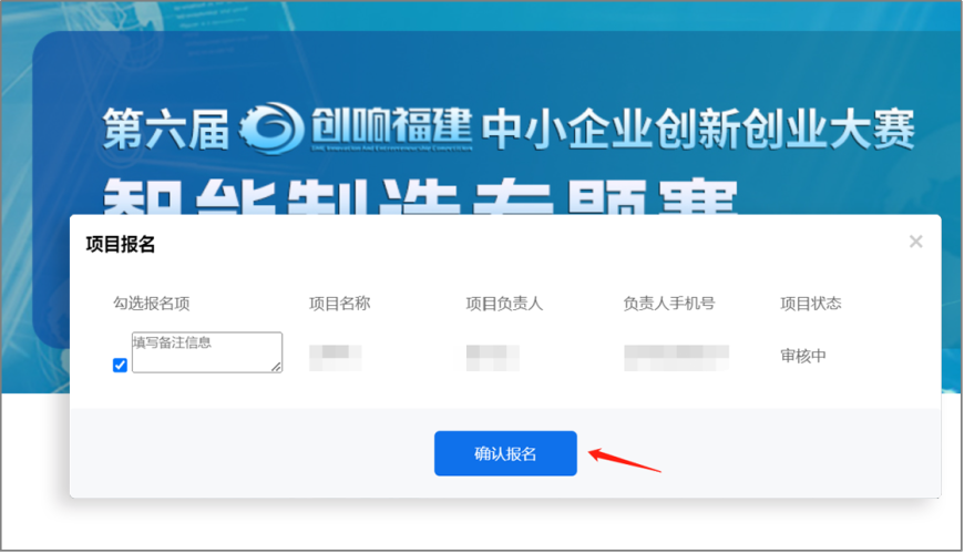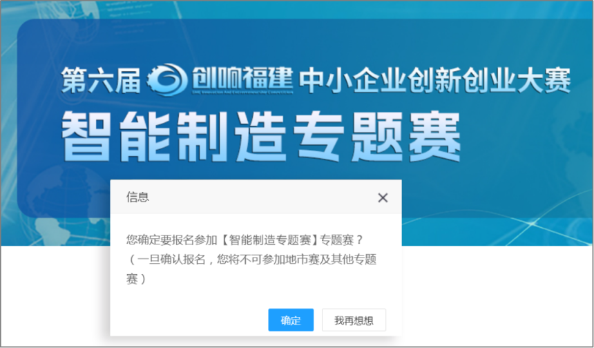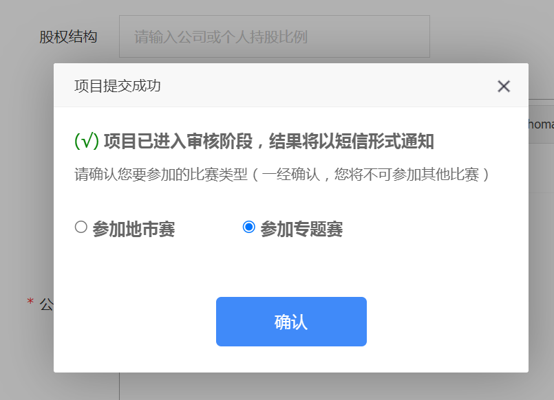 完成项目填写并提交后,选择【参加专题赛】-【确认】,将跳转至专题赛列表。