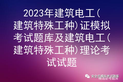 2023年建筑电工(建筑特殊工种)证模拟考试题库及建筑电工(建筑特殊工种)理论考试试题是由安全生产模拟考试一点通提供,建筑电工(建筑特殊工种)证模拟考试题库是根据建筑电工(建筑特殊工种)最新版教材,建筑电工(建筑特殊工种)大纲整理而成(含2023年建筑电工(建筑特殊工种)证模拟考试题库及建筑电工(建筑特殊工种)理论考试试题参考答案和部分工种参考解析),掌握本资料和学校方法,考试容易。建筑电工(建筑特殊工种)考试技巧经过题库老师和建筑电工(建筑特殊工种)已考过学员的汇总,相对有效而可行的复习方式就是对建筑电工(建筑特殊工种)的试题攻克,进行多方面的试题训练。2023建筑电工(建筑特殊工种)证模拟考试题库及建筑电工(建筑特殊工种)理论考试试题个人、培训学校进行考试前有效训练,确保学员学习后能顺利通过考试。