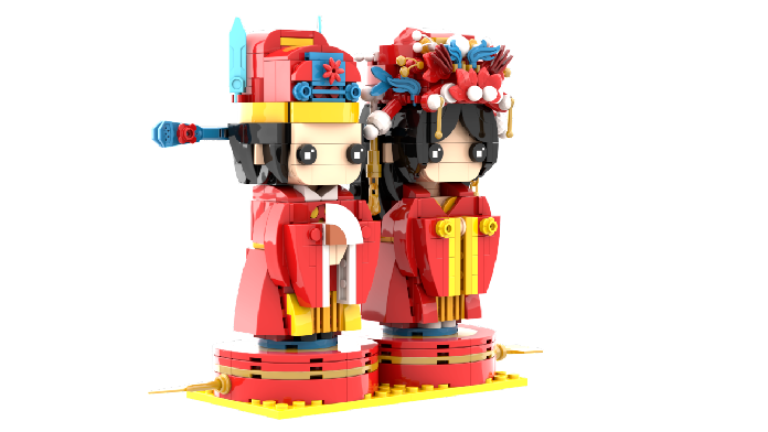 “情比金坚”十里红妆乐高积木玩具,
