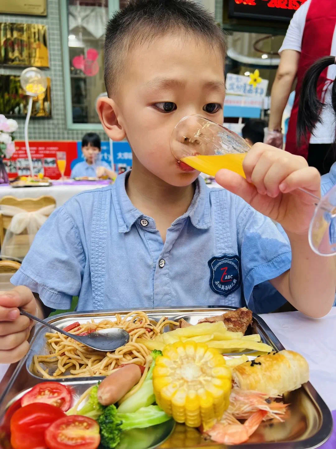自由选择!提供一个具有多个食品展示区的场所,让幼儿们根据自己的喜好和食欲自由选择食物。可以将食物分为不同的类别,如主食、蔬菜、水果、饮料等,给予幼儿更多选择的机会。