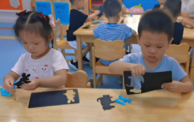 原来所有东西都有影子,影子和光源的关系可谓是如影随形,影子因光而生也因光而灭,光源的移动带动了影子的随意变换,不光小朋友们剪纸十分用心而且成果也十分精致好看,影子也随之栩栩如生一般在桌上映射出来。