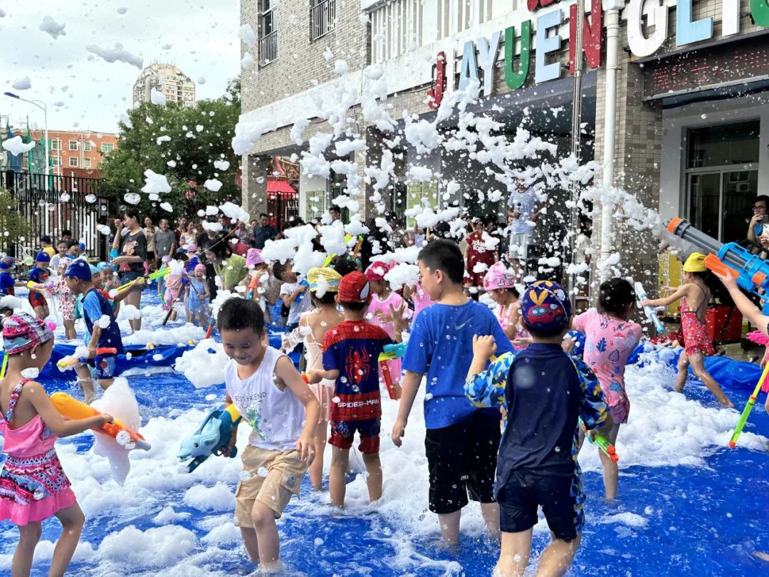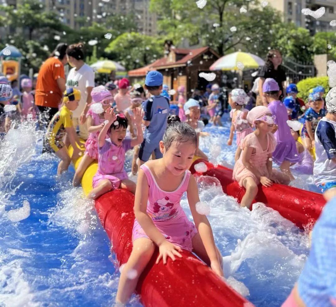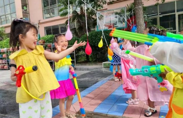水球游戏开始啦!尖叫声、欢呼声、呐喊声,此起彼伏。一个个可爱的小身影玩得多开心!小朋友们拿着水枪激情四射,充满了童年的活力,水球和水枪的相互交织,让操场上水花四溅,孩子们奔跑嬉戏,让他们在奔跑和玩耍中健康成长!