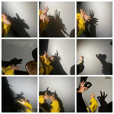 孩子们通过手影游戏唤起听觉、言语和思维等多种感官的参与,锻炼了手部肌肉的运动,促进左右脑的和谐发展,手指间的舞动引发孩子们的想象力和创造力。