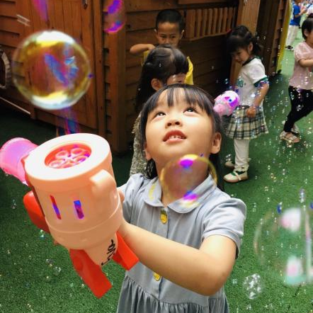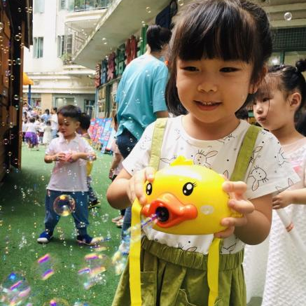 吹啊吹,孩子们欢快的笑声回荡在空中,七彩泡泡随之飘飞,彩虹般闪烁。在这个奇妙的场景中,孩子们的欢声笑语伴随着七彩泡泡飘荡在天空,创造出绚丽多彩的美好时刻。