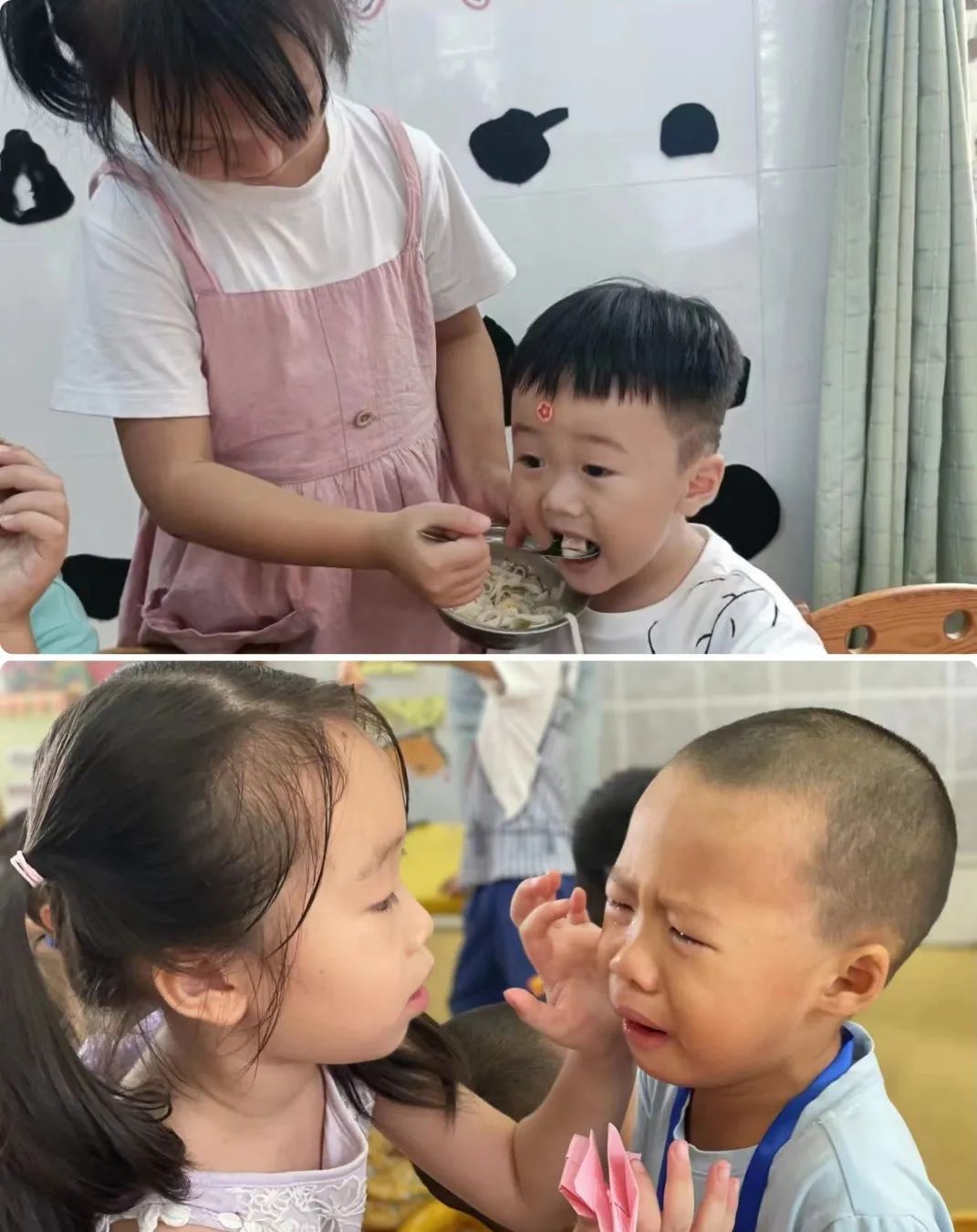 "开拓号"载着我们成长的硕果回到了幼儿园,看,我们的幼儿园来了新成员!可爱的弟弟妹妹们还有点想家,脸庞晶莹的泪珠真让人牵挂!弟弟妹妹们,你们知道吗?幼儿园也是我们的家!哥哥姐姐智慧多,让我们来照顾你们吧!哥哥姐姐会给予你们爱的安抚;用我们的行为给予爱的抱抱,爱的贴心,让你们感受幼儿园的温暖,让我们进行一场有爱的旅行吧。