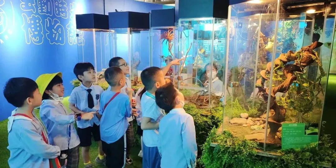 研学活动我们来到"虫动时光"探索体验馆,这里收藏自然中易亲近的奇异活体物种及部分珍贵标本,打造"两栖"、"爬行"、"节肢"、"萌宠"、"标本"五大沉浸主题展区,形成自然探、科普研学、美育手工等丰富的趣玩趣学体验。在这里,打开孩子们的惊奇之心,一起做自然观察家,发现自然之奇,探索自然之真,共享自然之美,重新看见生命世界里的惊奇与神秘。