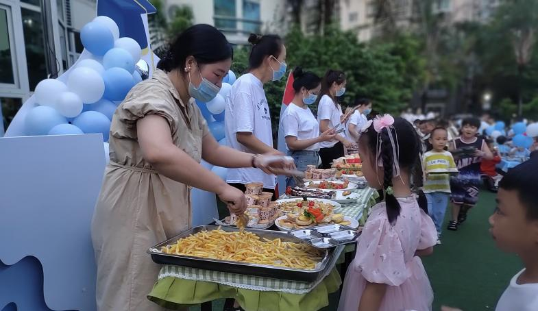 锵锵锵!在活动前,教师和工作人员可以将各种美食进行展示,并向幼儿们介绍每种食物的特点、营养价值和制作方式,让小朋友们对美食产生喜爱和珍惜,水果的直接呈现和甜品的间接呈现也让小朋友们知道食物之间的不同和他们的由来,让小朋友们科学的认识到原料与食物的关系。