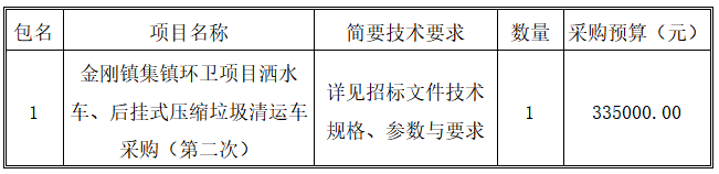 金刚镇集镇环卫项目洒水车、后挂式压缩垃圾清运车采购(第二次)