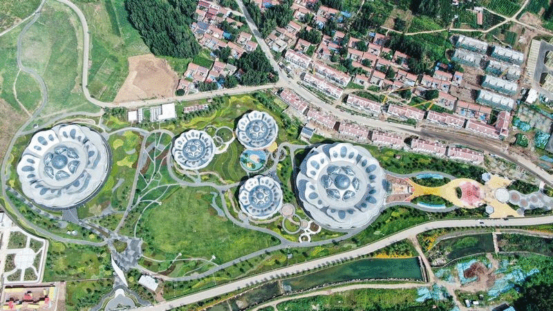 核心场馆五朵桃花造型综合体已落地,分别为快乐芒果、航空航天主题、鱼菜共生、台湾风情、橘子布美学等高品质体验馆。并打造雲水间精品民宿和雲悦服务中心。尹家峪田园综合体依托沂蒙山水践行未来田园的样板,是齐鲁大地最具影响力的农旅融合、景田一体、产村联动的田园综合体。