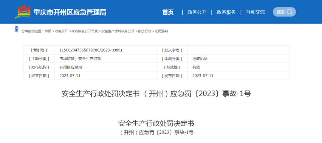 应急罚〔2023〕事故-1号