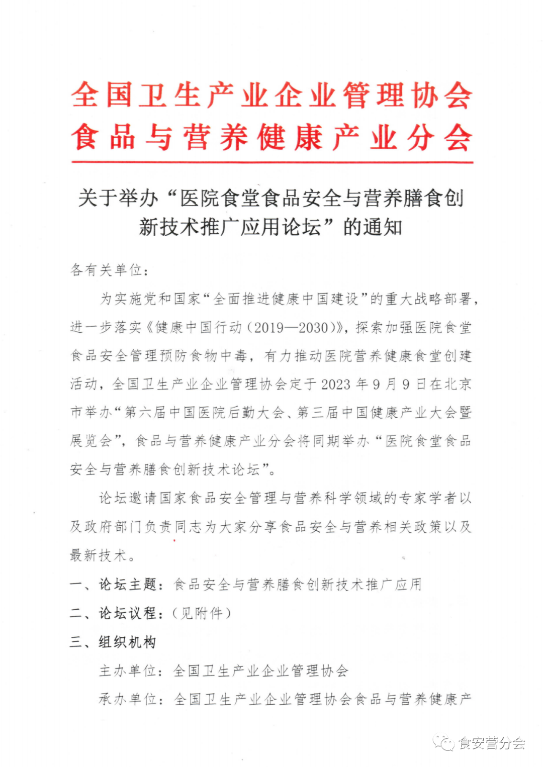 关于举办“医院食堂食品安全与营养膳食创新技术推广应用论坛”的通知