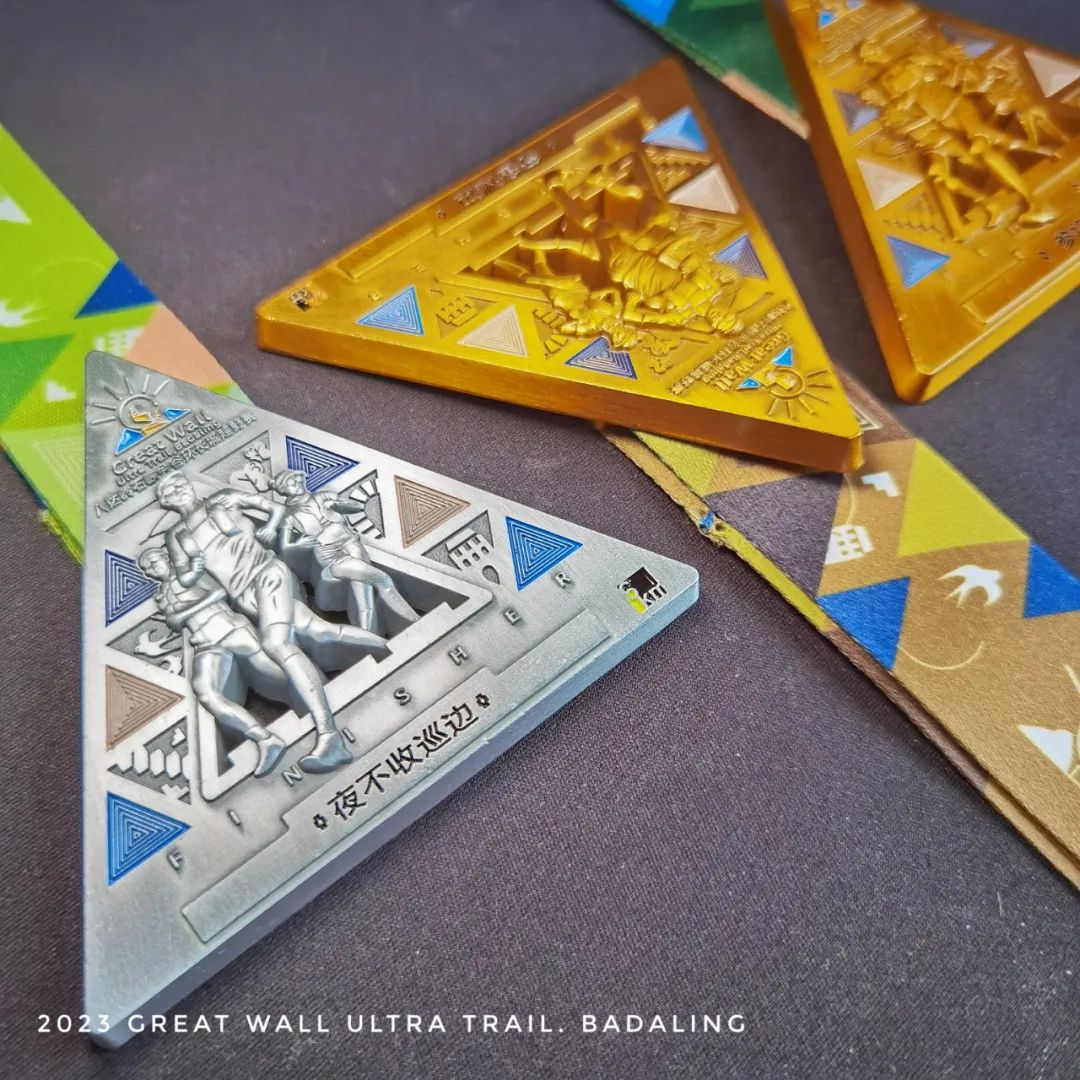 八达岭长城是中国古代伟大的防御工程重要的组成部分,所以奖牌主体轮廓以稳固的三角形作为视觉形态语言。