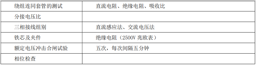 装置的检查、有载调压切换装置的检查、绝缘屏障检查、油循环管路与下轭绝缘接口部位检查。