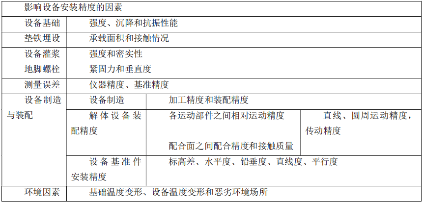 一、影响设备安装精度的因素
