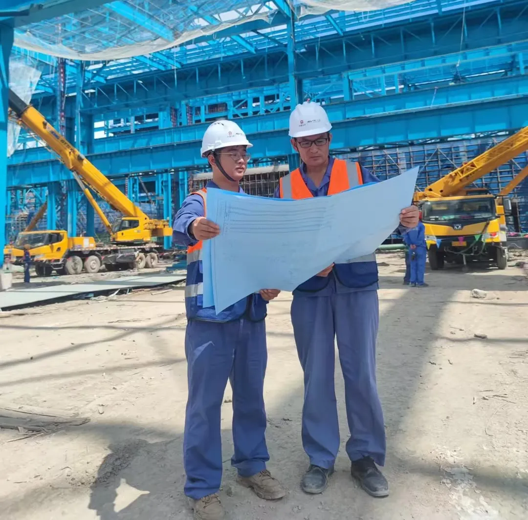后来,在炼钢三厂炼钢连铸主厂房工程初期,土建承台基础施工阶段。师傅带着我每日巡查土建施工质量,告诉我哪些质量是优质的,哪些是需要整改的,并告诉我“为什么要整改”“怎么整改”,几个月助我炼就了一双“火眼金睛”。在督促施工整改过程中,我也学会了怎么和工人沟通。随着土建工程收尾,我开始着手钢结构的材料对接,每天对钢构件的到货情况如实统计记录,结合现场学习钢结构安装施工全过程,并开始编制各类施工方案。