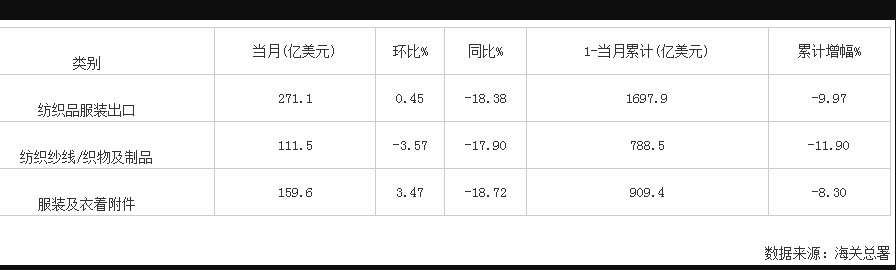 据海关统计,2023年7月我国出口纺织纱线、织物及制品111.541亿美元;2023年1-7月我国出口纺织纱线、织物及制品788.494亿美元,同比下降11.9%;2022年1-7月我国出口纺织纱线、织物及制品894.659美元。2023年7月我国出口服装及衣着附件159.607亿美元;2023年1-7月我国出口服装及衣着附件909.415亿美元,同比下降8.3%;2022年1-7月我国出口服装及衣着附件991.336亿美元。2023年7月我国进口纺织纱线、织物及制品10.589亿美元;2023年1-7月我国进口纺纺织纱线、织物及制品63.992亿美元,同比下降15.3%;2022年1-7月我国进口纺织纱线、织物及制品75.552亿美元。目前,全球通胀持续居于高位、欧美货币环境收紧,经济复苏动能不足。美、欧等传统出口市场纺织服装产品消费空间受到挤压,对我国纺织业出口需求造成负面影响。根据国际货币基金组织(IMF)7月25日更新的《世界经济展望》,全球经济增速预计将从2022年的3.5%下降至2023年和2024年的3.0%。同时,IMF下调了美国和欧元区的经济增长预期,预测其将在2023年分别放缓至1.8%和0.9%。外部需求不振可能持续一段时间,建议外贸企业充分挖掘双循环市场潜力,努力实现可持续经营目标。【免责声明:本文所载内容来源互联网,微信公众号等公开渠道,我们对文中观点保持中立,仅供参考;转载本文仅为交流之目的,转载的稿件版权归原作者和机构所有,如有侵权,请联系我们删除。】