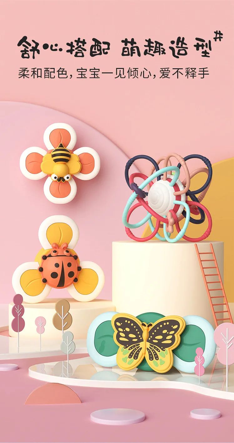 年龄小点的宝宝们,会到处探索看看能吸在哪里,自己试着转转,一旦花瓣转起来,就停不下乐此不疲啦~