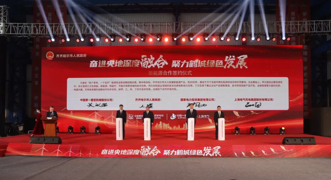 4月1日,齐齐哈尔市委、市政府、上海电气风电集团、中国一重集团、中国核工业集团、国家电投集团五方合作签约仪式在齐齐哈尔中国一重集团举行。