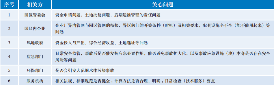 表1 化工园区事故应急设施(池)相关方关心问题一览表