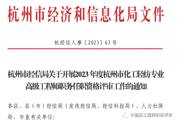 杭州市所属企事业单位(不含参照公务员制度管理的事业单位)从事化工、轻工、纺织、丝绸等专业的工程技术、工程技术管理工作,符合申报高级工程师资格申报条件的人员。