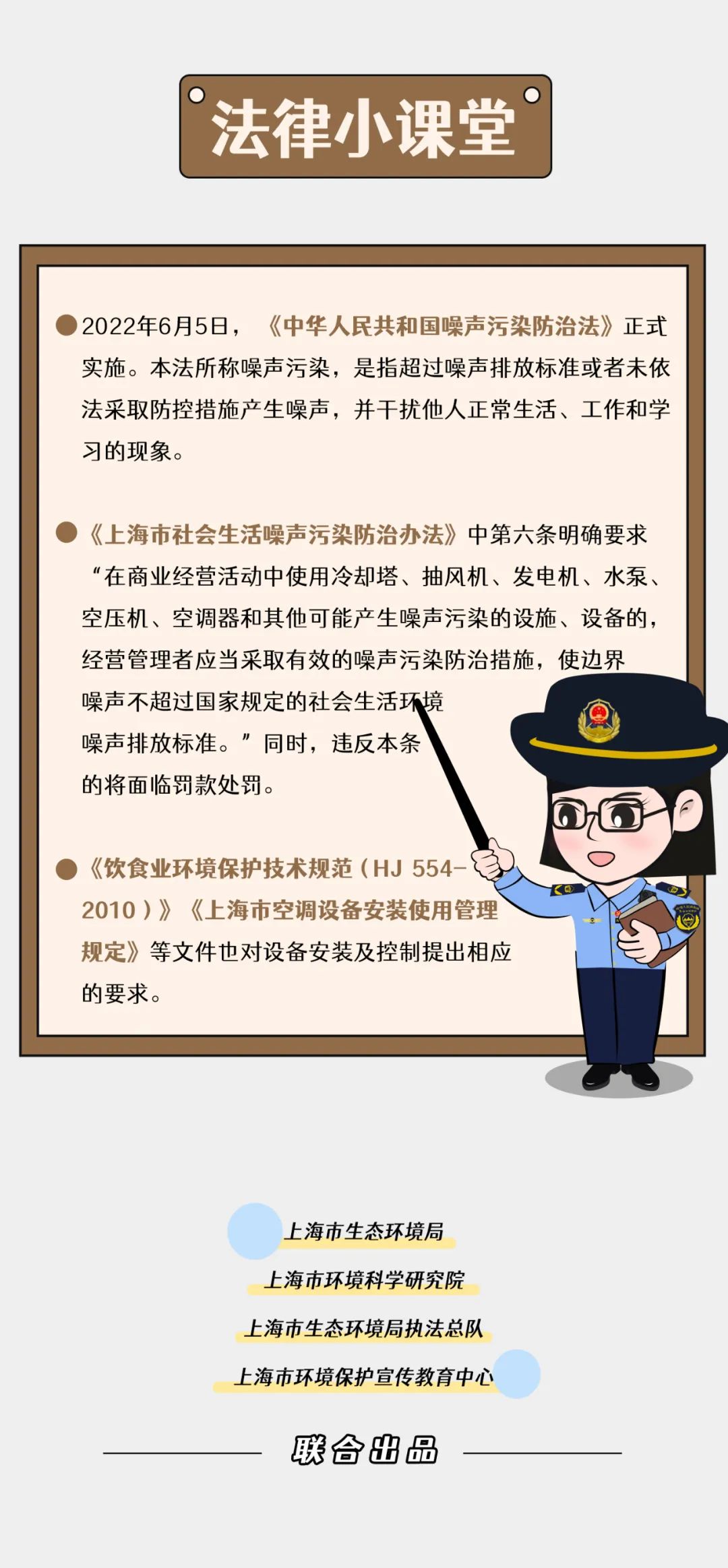 为此,上海市生态环境局采用“噪声案例漫画说法”方式,向公众解读常见噪声违法行为和公民守法要则、宣贯噪声防治的法规政策,向商业经营者介绍科学的噪声污染治理技术措施,引导企事业单位、经营者及广大公众,共同营造安静舒适的生活环境。