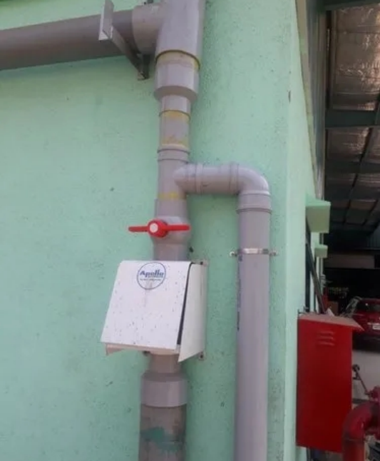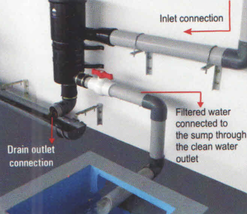 经过两级这样的过滤器,(过滤孔----过滤网)后,雨水已经肉眼看不见杂质了。这个时候,就可以直接存储、沉淀。要用的时候 被水泵带入净水器的前级。