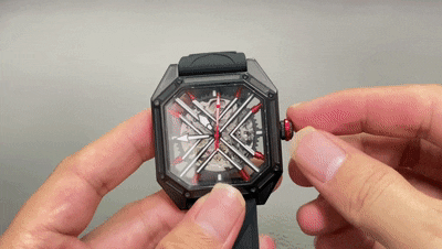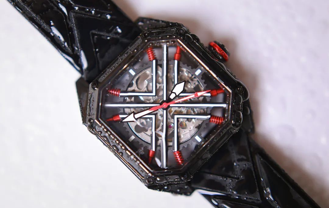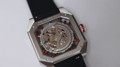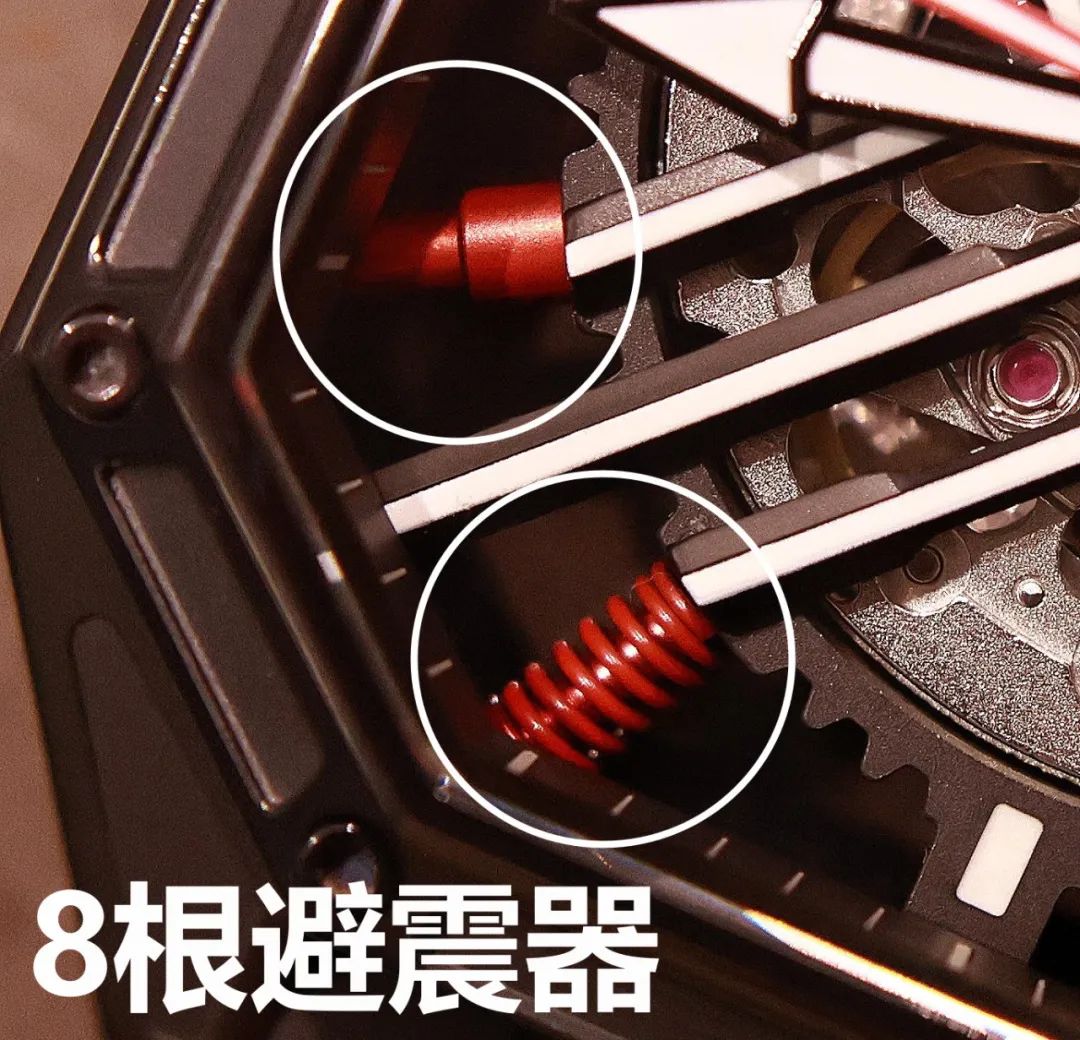 而这款全镂空机械表,从汽车的避震器得到灵感,将机械弹簧和气动弹簧双结合