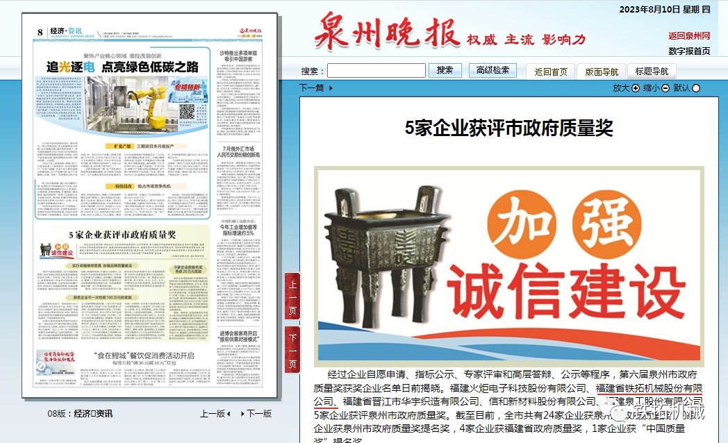 第六届泉州市政府质量奖评选结果正式公布。