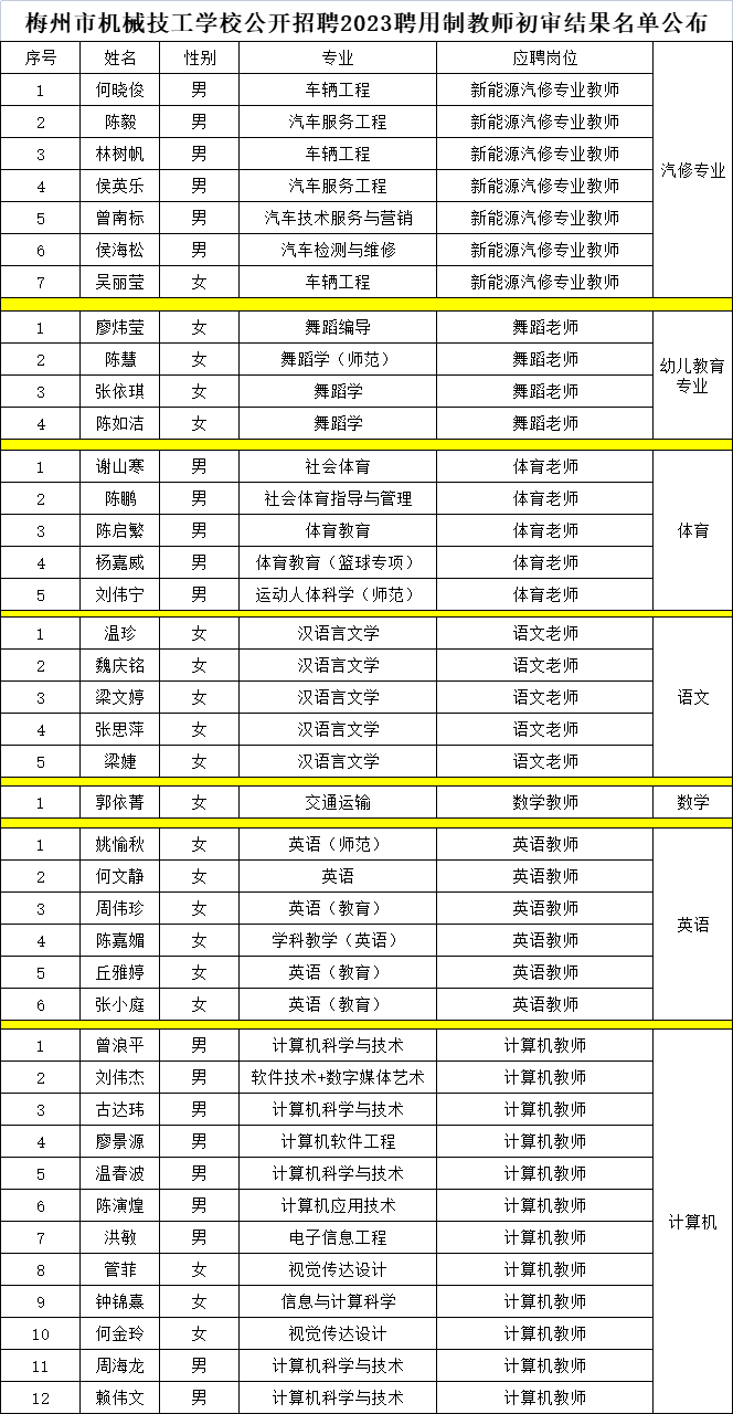六、为切实做好梅州市机械技工学校2023年公开招聘聘用教师面试工作,根据《梅州市机械技工学校公开招聘2023年聘用制教师公告》要求,结合实际,现就面试具体事宜公告如下: