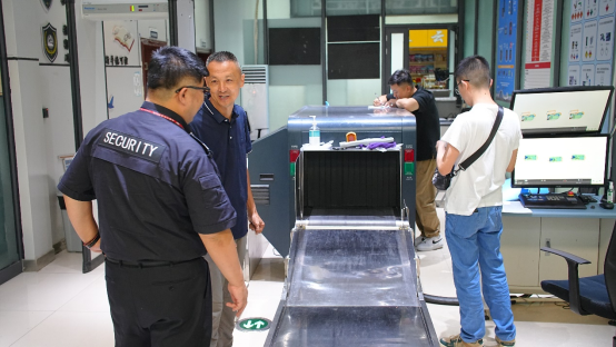机场安检站恭迎检查小组莅临机场检查并指导工作;检查期间,安检站全力配合检查小组针对机场所有在用X 射线安全检查设备进行设备检测,此次检测的设备共有8台X射线机,包括旅检2台双视角X射线机、行检4台双视角X射线机、道口1台双视角X射线机以及货运1台双视角X射线机;针对检测中所出现的各项有疑问数值,机场安检站设备小组积极与检查组进行协商解决,确保所有X射线机全部处于安全、合格的状态。