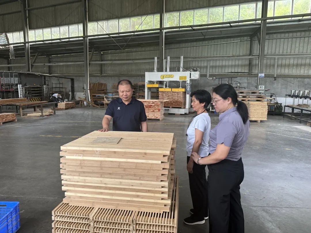 谷国海一行深入盈昌竹木、傲世干燥等企业生产车间,实地察看竹木产品生产工艺及产品开发情况,并与企业家深入交流,向企业家宣传解读竹木产业扶持政策,帮助企业协调解决生产经营中遇到的难题。