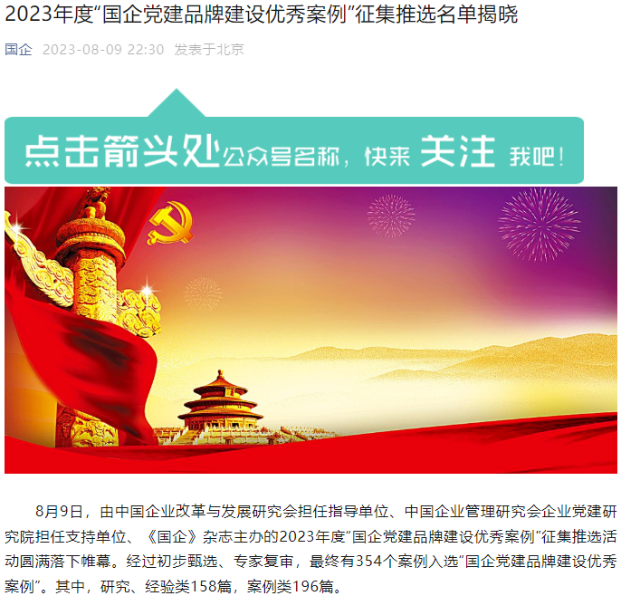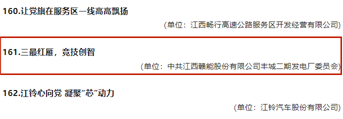 8月9日,由中国企业改革与发展研究会担任指导单位、中国企业管理研究会企业党建研究院担任支持单位、《国企》杂志主办的2023年度“国企党建品牌建设优秀案例”征集推选活动圆满落下帷幕。经过初步甄选、专家复审,在全国1000余篇参选案例中,江西赣能股份有限公司丰城二期发电厂党委推送的《三最红雁,竞技创智——赣能股份丰城二期发电厂发电党支部党建品牌实践案例》成功入选。据悉,江西省仅5家企业入选。