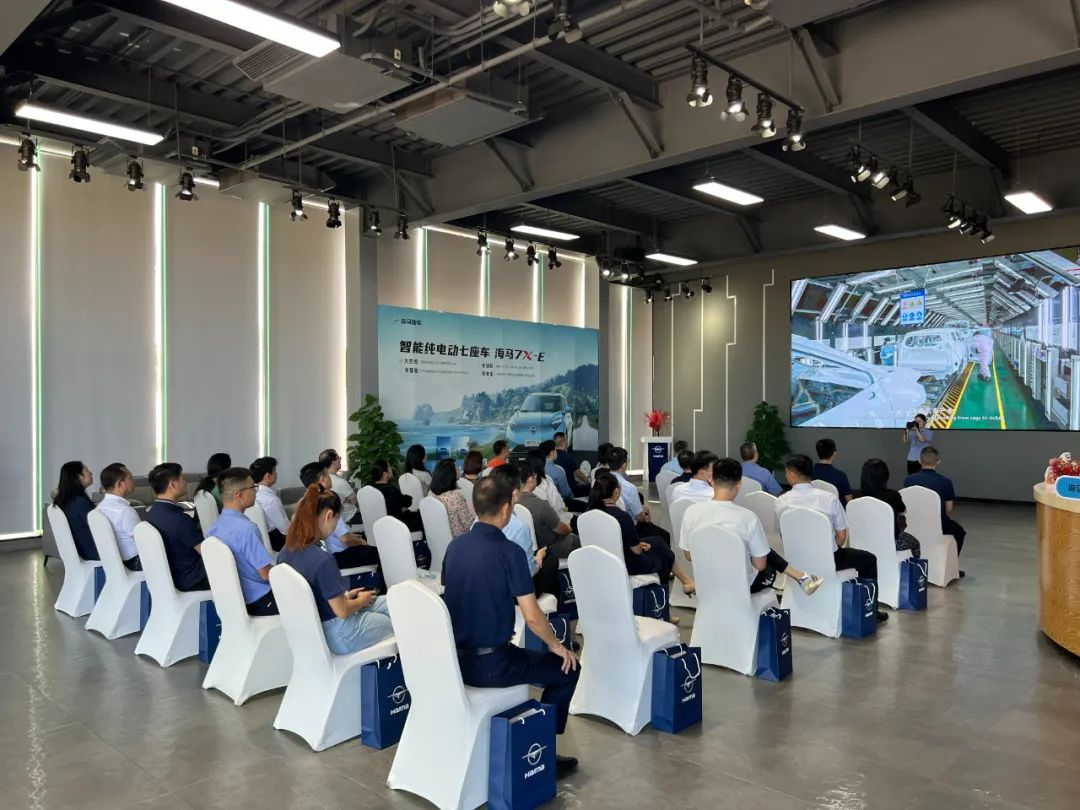 交流人员实地参观了海马新能源汽车体验中心,现场试乘试驾纯电动车型7X-E、燃油车型海马7X、氢燃料电池汽车7X-H等主力车型,深入了解海南海马汽车依托遍布全岛的服务网点,为企事业单位和个人提供优质出行服务的模式,以及在购车、租赁等方面的优惠政策。