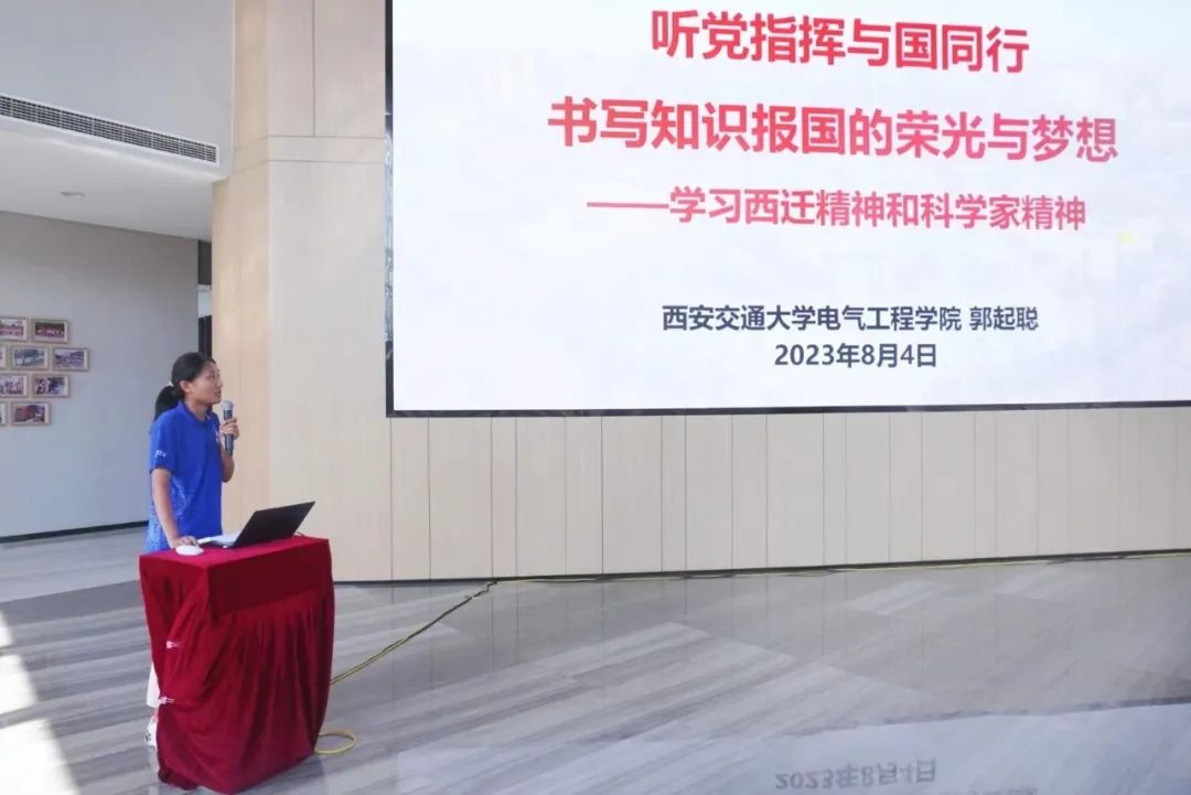 郭起聪为大家带来“听党指挥与国同行,书写知识报国的荣光与梦想”主题宣讲。她以钱学森、陈学俊、刘文凤等不同时代交大人的故事作为切口,深入解读了科学家精神和西迁精神的丰富内涵,鼓励大家为国家民族复兴贡献自己的力量。