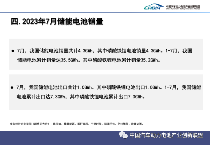 7月,我国储能电池销量共计4.3GWh,其中磷酸铁锂电池销量4.3GWh。1-7月,我国储能电池累计销量达35.5GWh。其中磷酸铁锂电池累计销量35.2GWh。