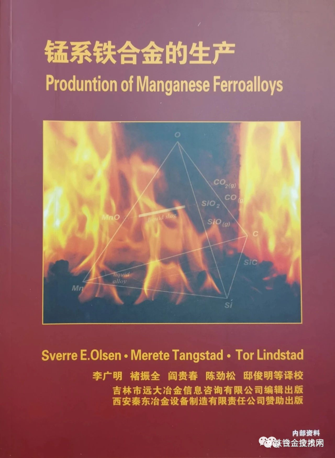 近日,由阎贵春、韦少华专家翻译的俄罗斯新著《铁合金理论与实践》已由吉林市远大冶金信息咨询有限公司独家出版发行,供我国铁合金行业技术人员学习参考。本书责任编辑:孔立军。