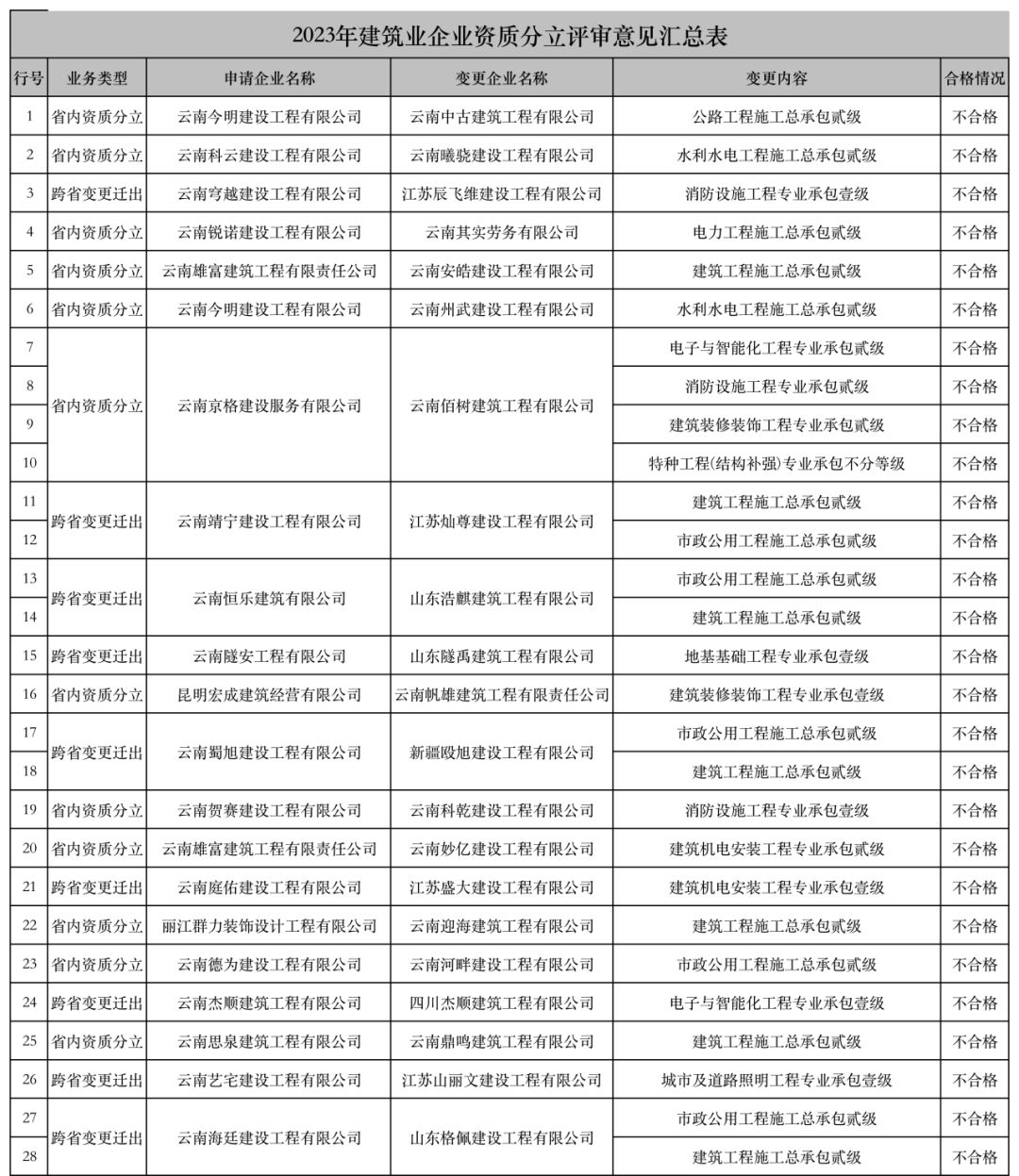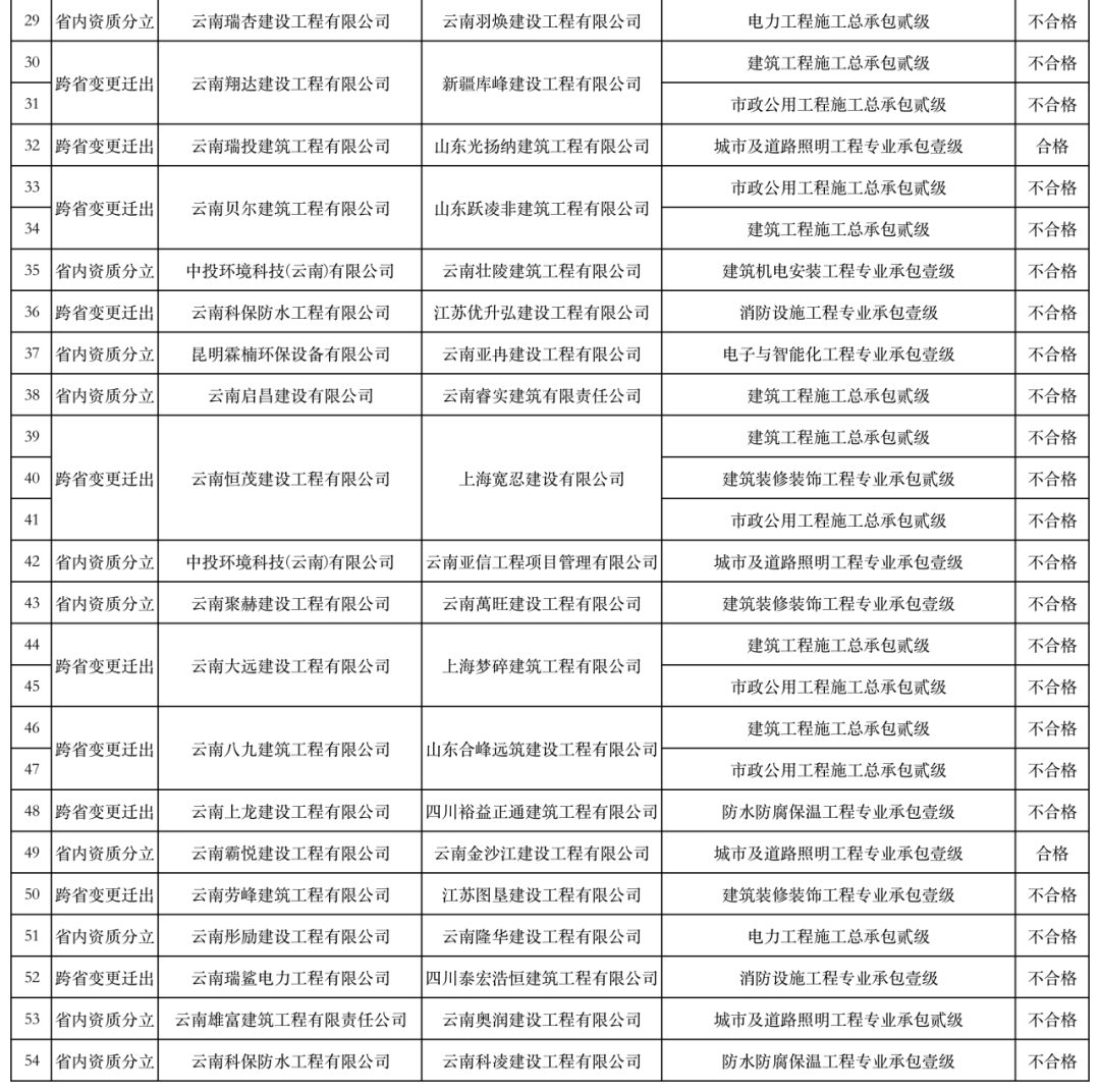 云南省住房和城乡建设厅关于2023年建筑业企业发生重组、合并、分立等情况核准审批第11批建筑业企业资质审查结果公示