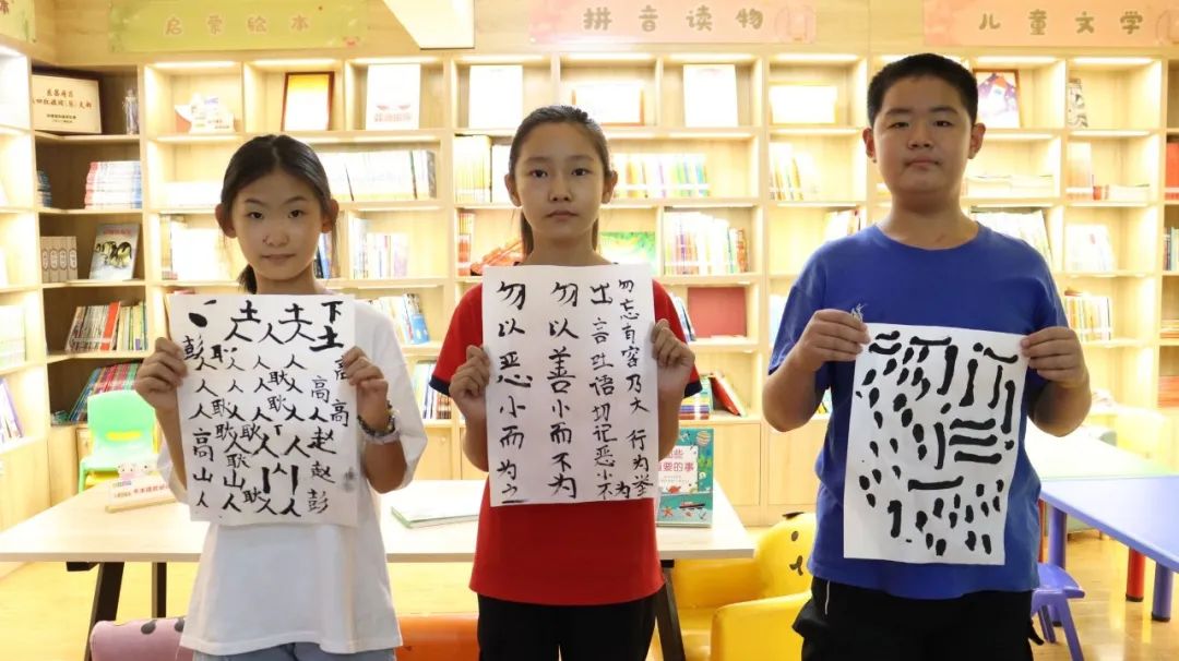 活动最后,孩子们积极展示自己的书法作品,并进行拍照留念。