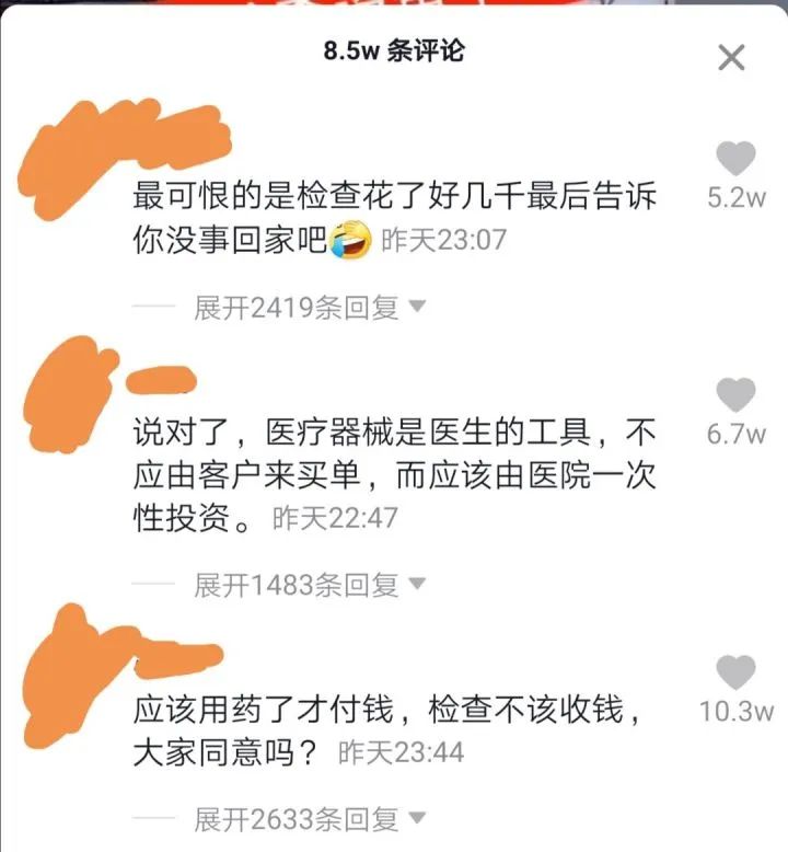 医院里最值钱的玩意,其实是医生瞧病的技术和本领。没有任何医院设置了“阅片费”“彩超解读费”“化验结果解读费”“疾病诊断费”吧,所以医院已经无形中把医疗过程中的“知识服务费用”几乎给抹除了!你想想你在三甲医院一个学医10年都快秃头的博士医师为你一对一服务,医院只收你25元挂号费,也就是半杯星巴克咖啡的钱,够便宜的吧?你还想要这个博士自备价值几百万上千万的医疗设备为你服务,还不允许加钱?既要马儿跑,又要马儿不吃草,哪有这种好事?修车师傅的普通板钳确实不需要额外收费,但如果那个板钳是他花了1000万买来的,你试试看他要不要找你额外收费?从这条几万人点赞评论可以解读出看病的人普遍心理:检查完没事了,感觉检查的钱白花了。这些人忽视了这些辅助检查会为他避免误诊、漏诊这些凶险的场景,也不会觉得,这些检查是一个医生运用自己的专业知识让诊断更加可靠的做法,是对患者生命健康负责的体现。@Kingdonia uniflora:只能说,中国有十几亿人,这十来万的点赞,说明其无知的可怕……@咸鱼:我觉得吧,检查的收费确实可以下调点,或者多纳入医保之类的政府补贴点@吃芥末的兔子:不是检查没问题不好。而是有问题,检查不出来。患者知道自己有问题,医生也知道,可上了检查却检查不出来什么问题才是不能接受的。