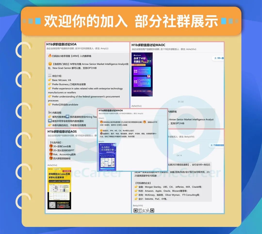 对于中国留学生来说,H1B是必不可少的,群里有很多内推岗位入职即可申请,你一定不想错过吧