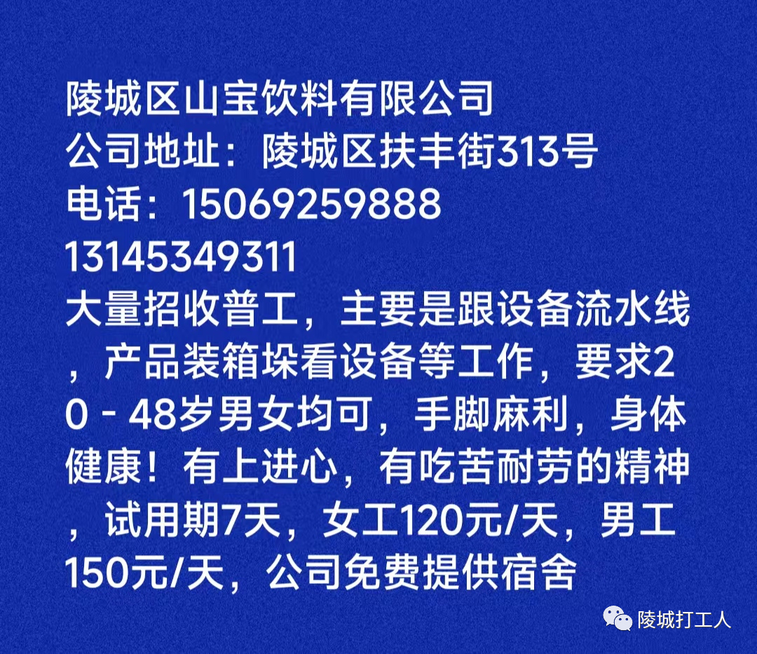 【急聘信息】山宝饮料有限公司招聘信息