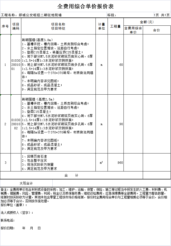 附件:1.全费用综合单价报价表
