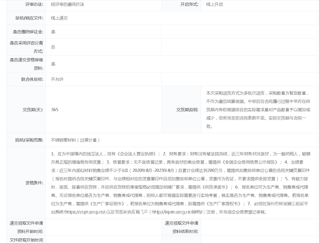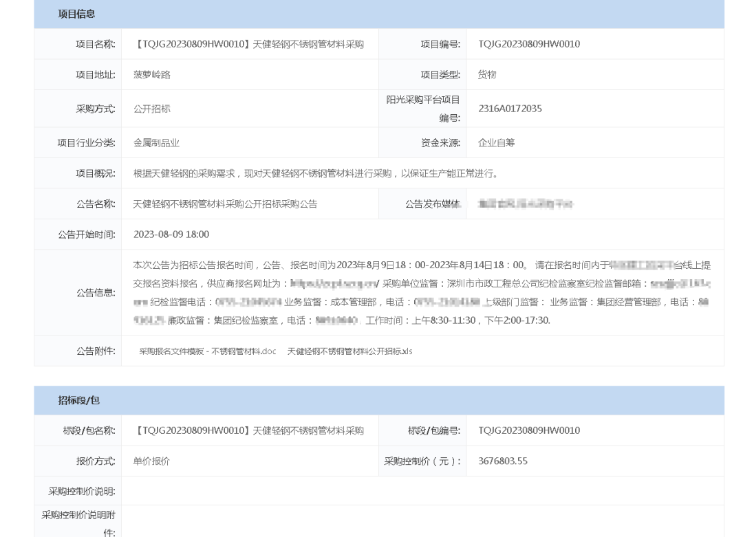 深圳天健不锈钢管采购招标公告