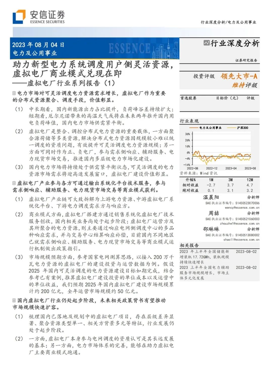 (3) 国内电力市场将持续处于供需紧平衡状态,可灵活调度的电力资源市场需求将迎高速发展窗口,虚拟电厂建设价值彰显。